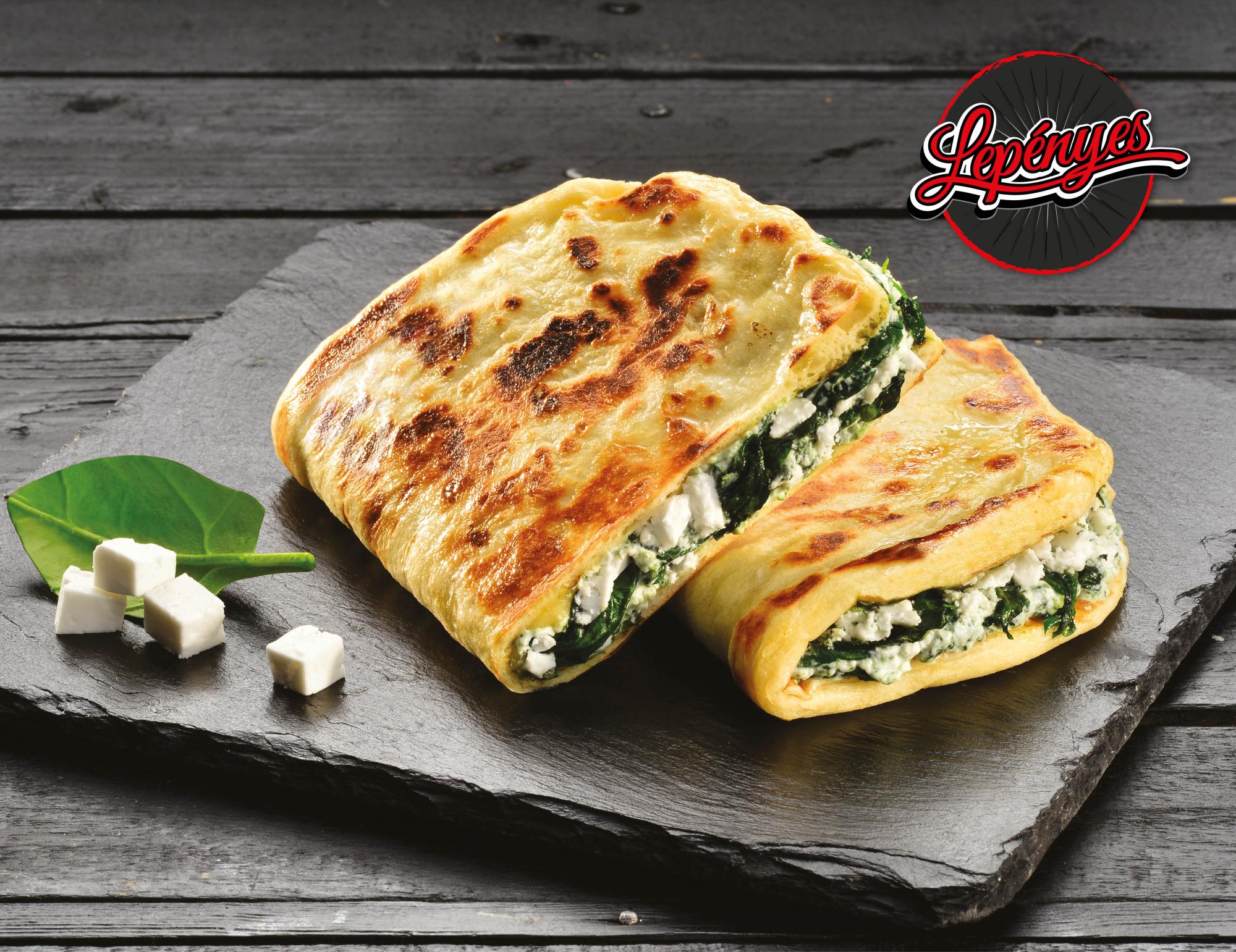 Kellemesen sült, mennyei illatú, rusztikus, kézzel nyújtott, kívül ropogós lepény friss parajjal és fetával töltve.