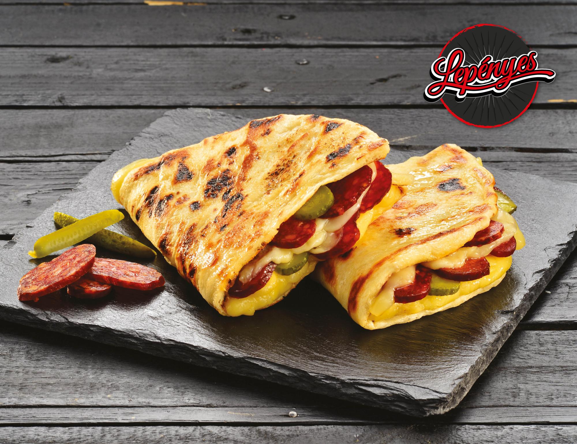 Kellemesen sült, mennyei illatú, rusztikus, kézzel nyújtott, kívül ropogós GYORSFAGYASZTOTT KOLBÁSZOS LEPÉNY kolbásszal töltve.
