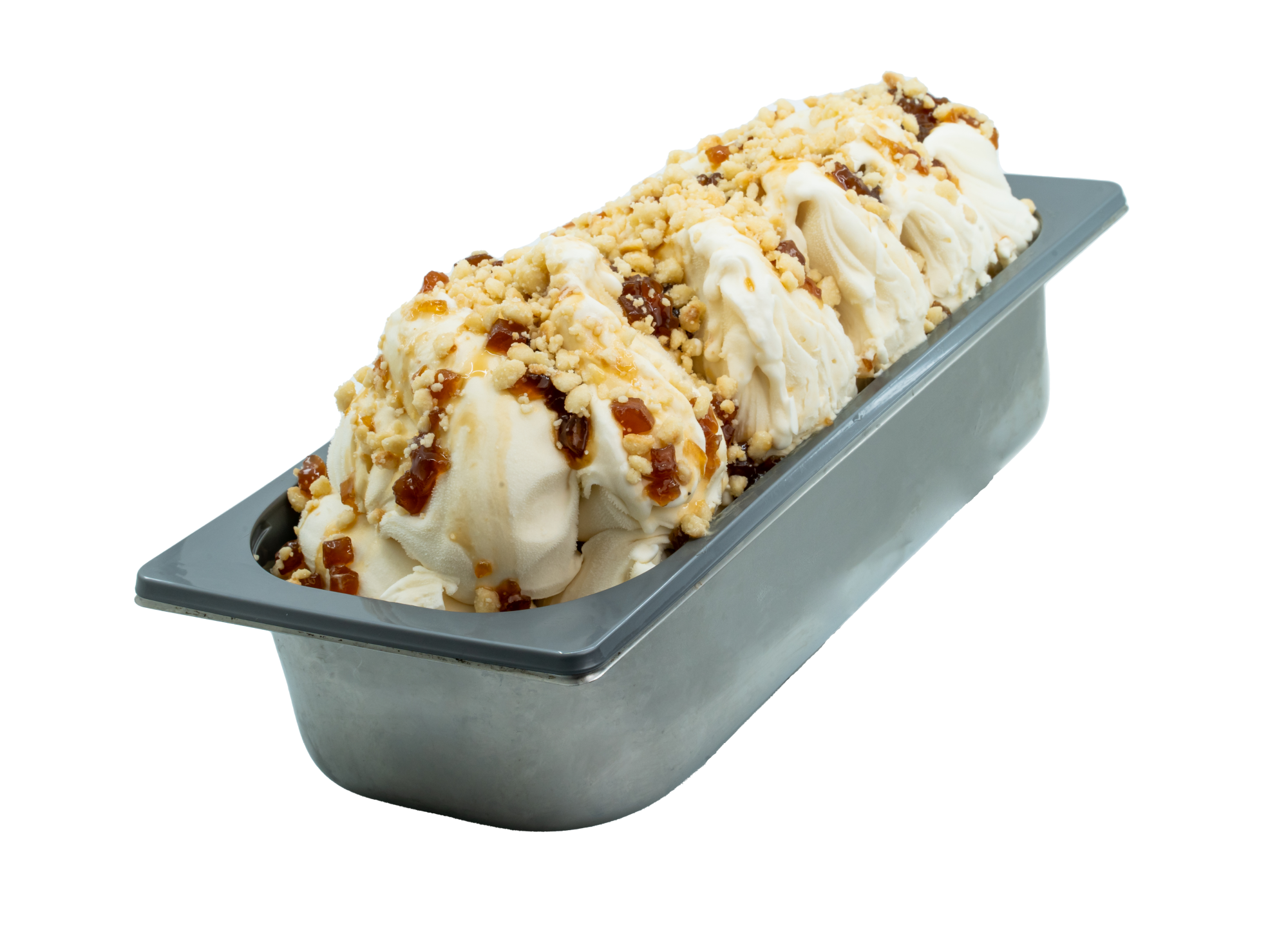 Összetevők: ivóvíz, cukor, FÖLDIMOGYORÓ paszta [9%] [FÖLDIMOGYORÓ (100%)], sovány TEJPOR, kakaós-mogyorós variegátó [5,6%] (FÖLDIMOGYORÓ; cukor; napraforgó olaj; kakaópor; sovány TEJPOR; étkezési só; emulgeálószer: SZÓJALECITIN), fagylalt alap (sovány TEJPOR; dextróz; emulgeálószer: zsírsavak mono- és digliceridjei, zsírsavak propán-1,2-diol-észterei, zsírsavak mono- és digliceridjeinek mono- és diacetil-borkősav-észterei; stabilizátor: szentjánoskenyérliszt, hidroxipropil-metil-cellulóz, guargumi), Panna Plus (finomított kókuszolaj; glükózszirup; TEJFEHÉRJÉK), karamellás variegátó [3,5%] (cukrozott sűrített TEJ; glükózszirup; víz; égetett cukor; sűrítőanyag: pektin; étkezési só; tartósítószer: kálium-szorbát; aromák), dextróz, pörkölt, aprított TÖRÖKMOGYORÓ [0,3%], karamell öntet [0,2%] (glükózszirup; égetett cukor; színezék: nátrium-szulfit-karamell; aromák)
